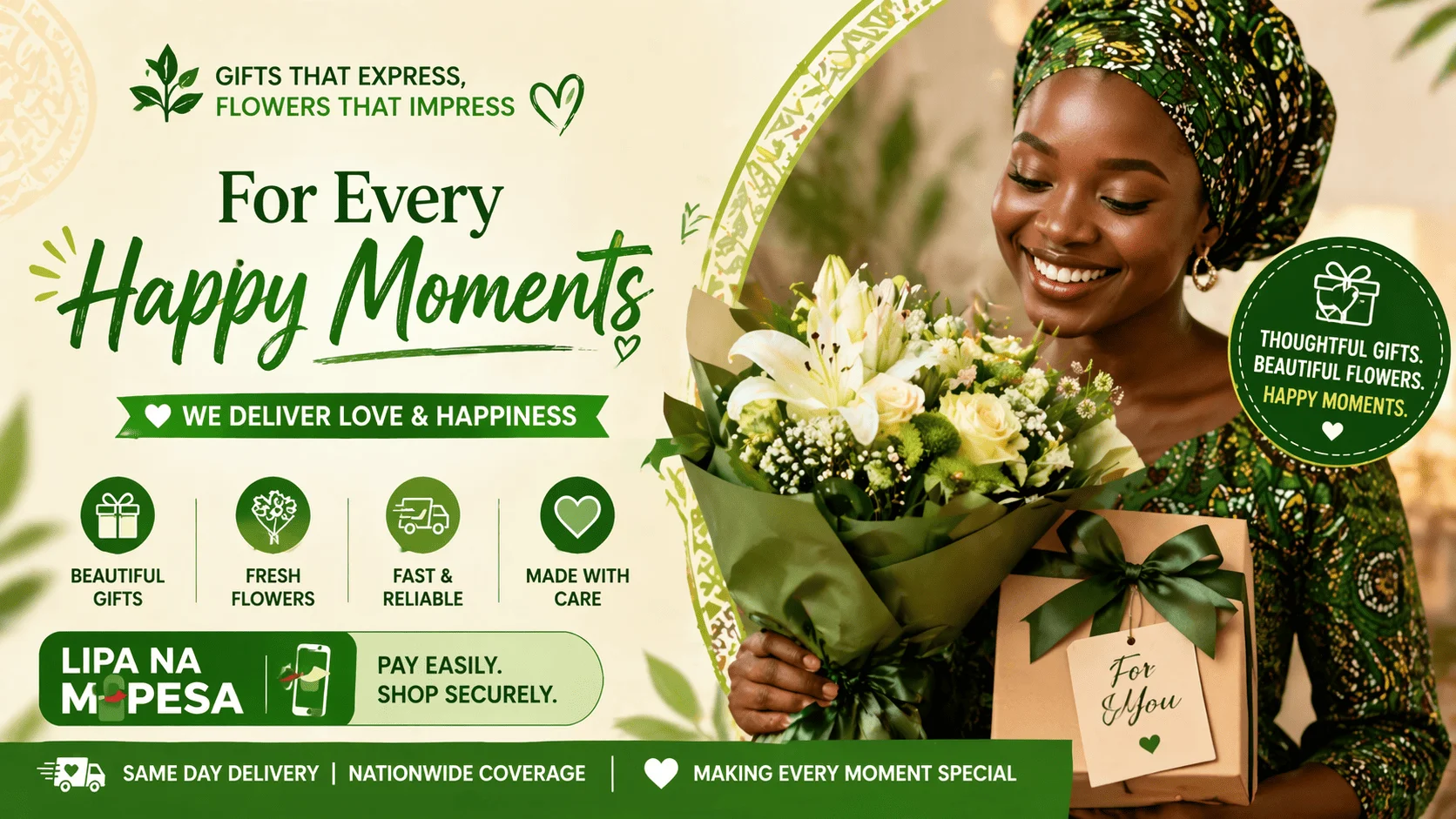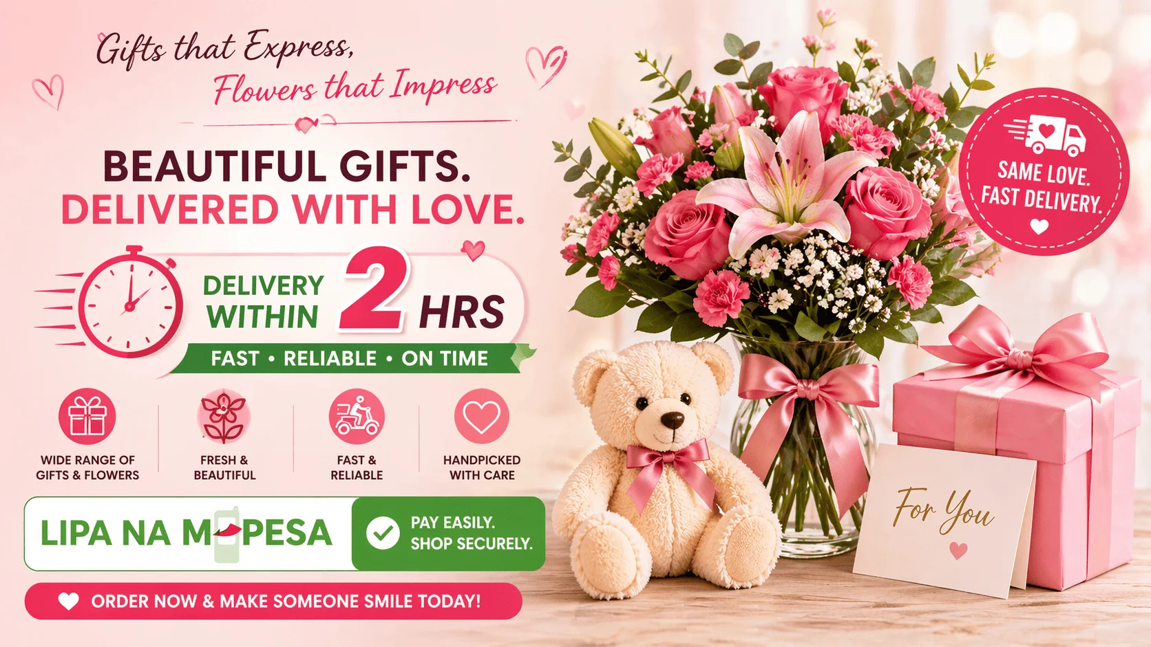 Excellent service! I used their Lipa na M-Pesa option and the process was so smooth. My order was delivered on time and the flowers were fresh and beautiful. Will definitely order again
